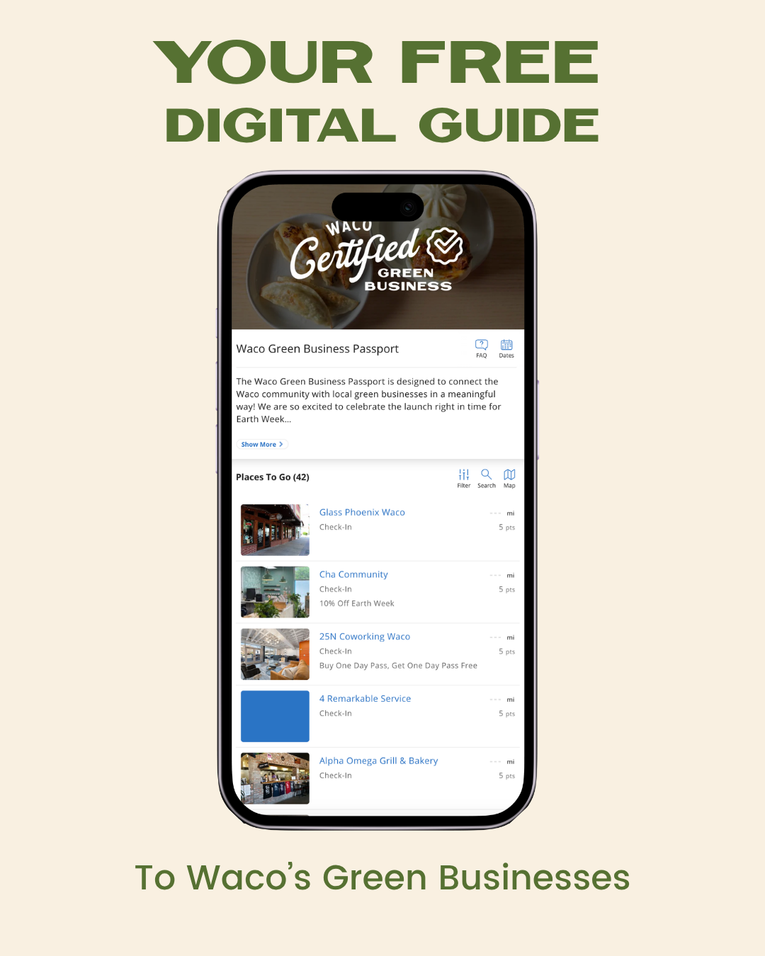 With special discounts at a few select locations. This digital guide is FREE and does not require an app. Simply sign up and open it on your web browser. The passport goes live in April, with Earth Week specials launching April 20-24.
